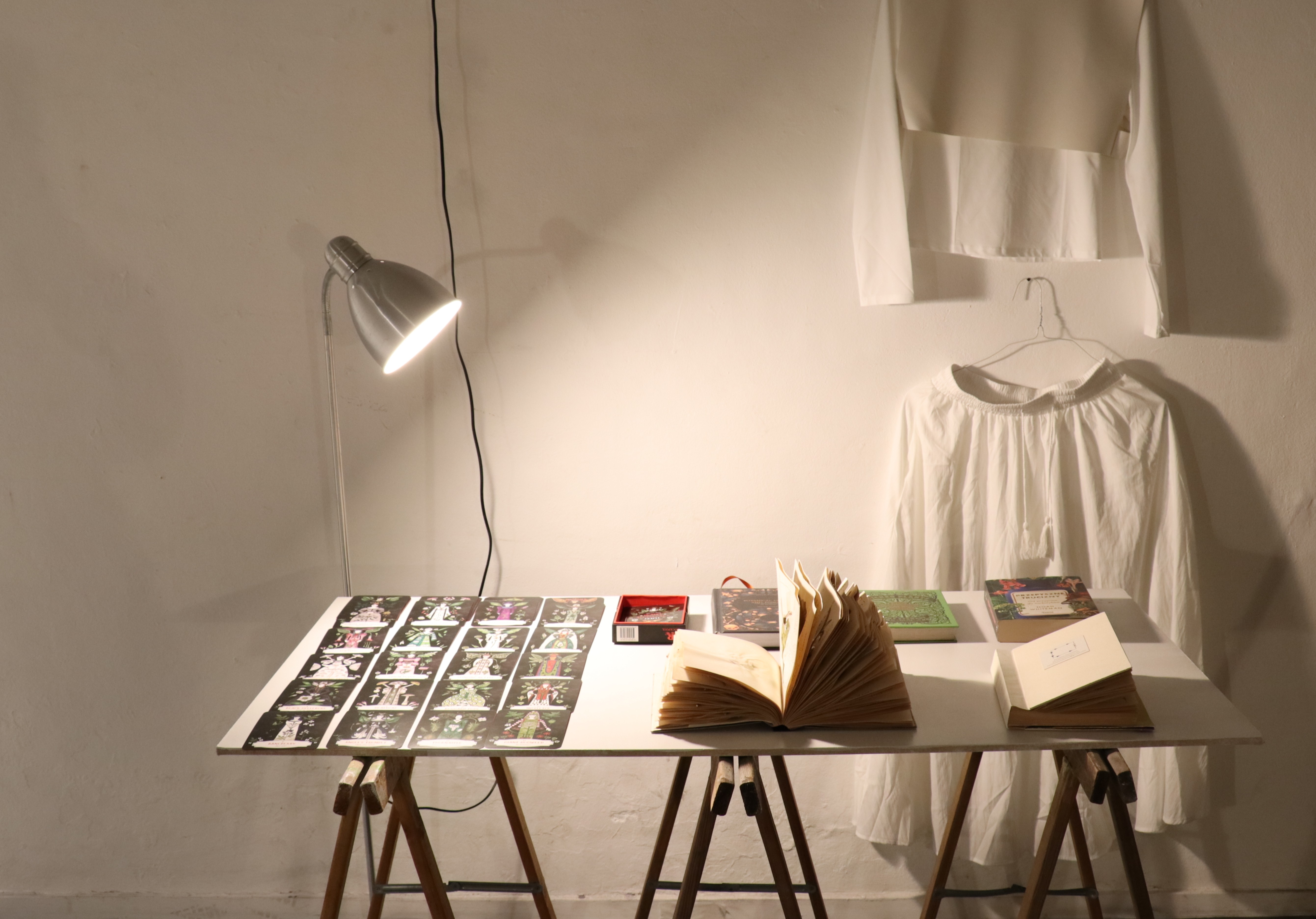 This project was a performance in the form of a 10-day living exhibition. It took place in a small private gallery, Miłość, in Toruń. The central point was examining the relationship between human and non-human living beings. Moreover, it was linked with the topic of irrational fears and the limits of sensual perception, which are rooted in culture. Miłość gallery was situated in a former flat and consists of three rooms. These rooms symbolize three areas of exploration and meaning. The key figures of this performance were insects. I intentionally chose the species associated with filth and danger: Madagascar cockroaches and Zophobas morio maggots. My constant presence in the gallery was an essential aspect of this project. I lived in one of the rooms, taking care of the insects and interacting with the audience. It resulted in a long-term relationship between the audience, insects, and me. The first room was an area for overcoming the grocery taboo and a place where a dinner at the opening took place (it was a part of the performance). Nonetheless, it was the second room that resembled a dining room. It was a clear, elegant chamber with a big table in the center. The table symbolized a meeting place. The last room was mine. It served as a research studio.